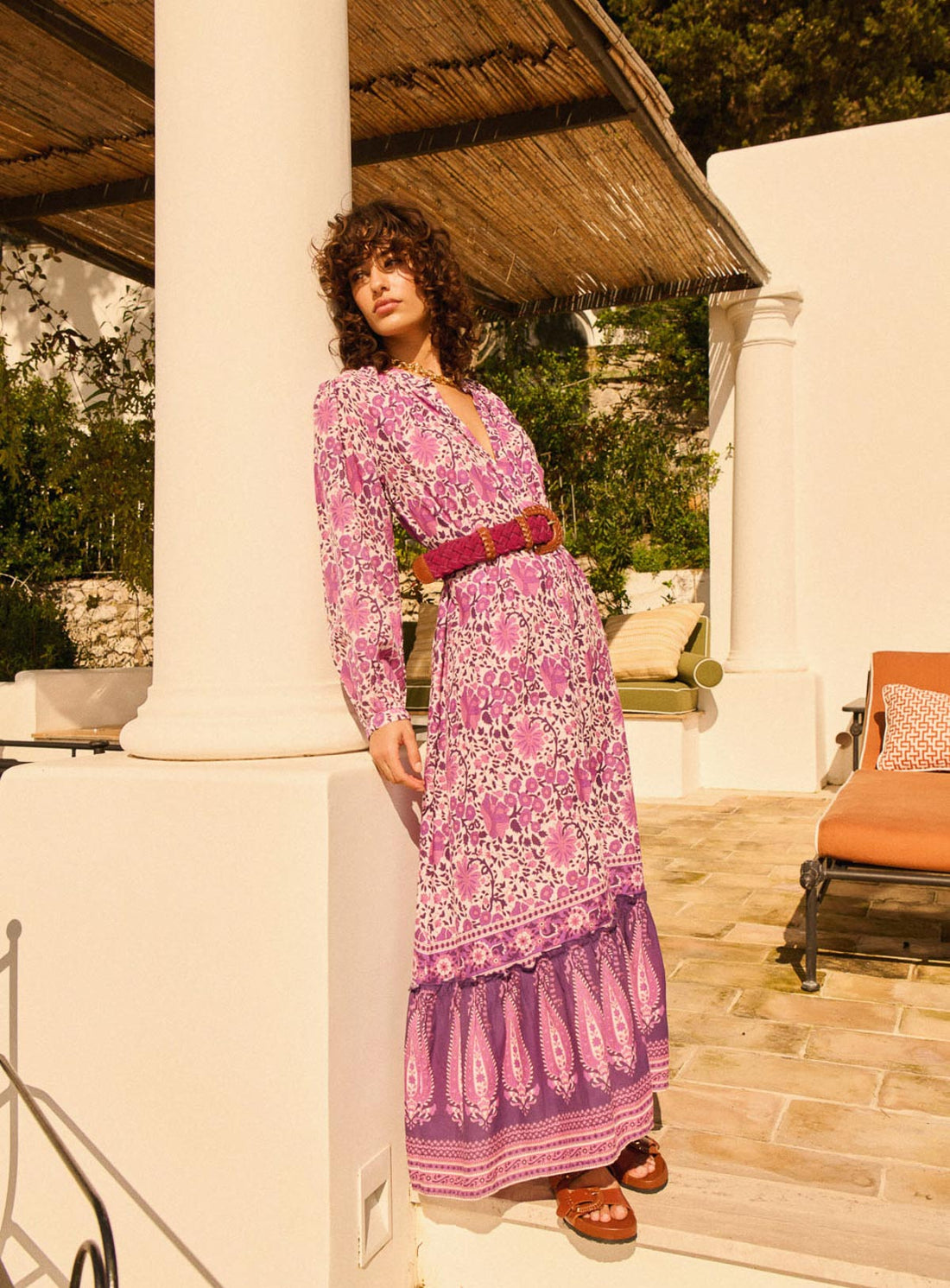 - Robe longue - Coupe ample et fluide - Ouverture boutonnée - Manches longues légèrement bouffantes...