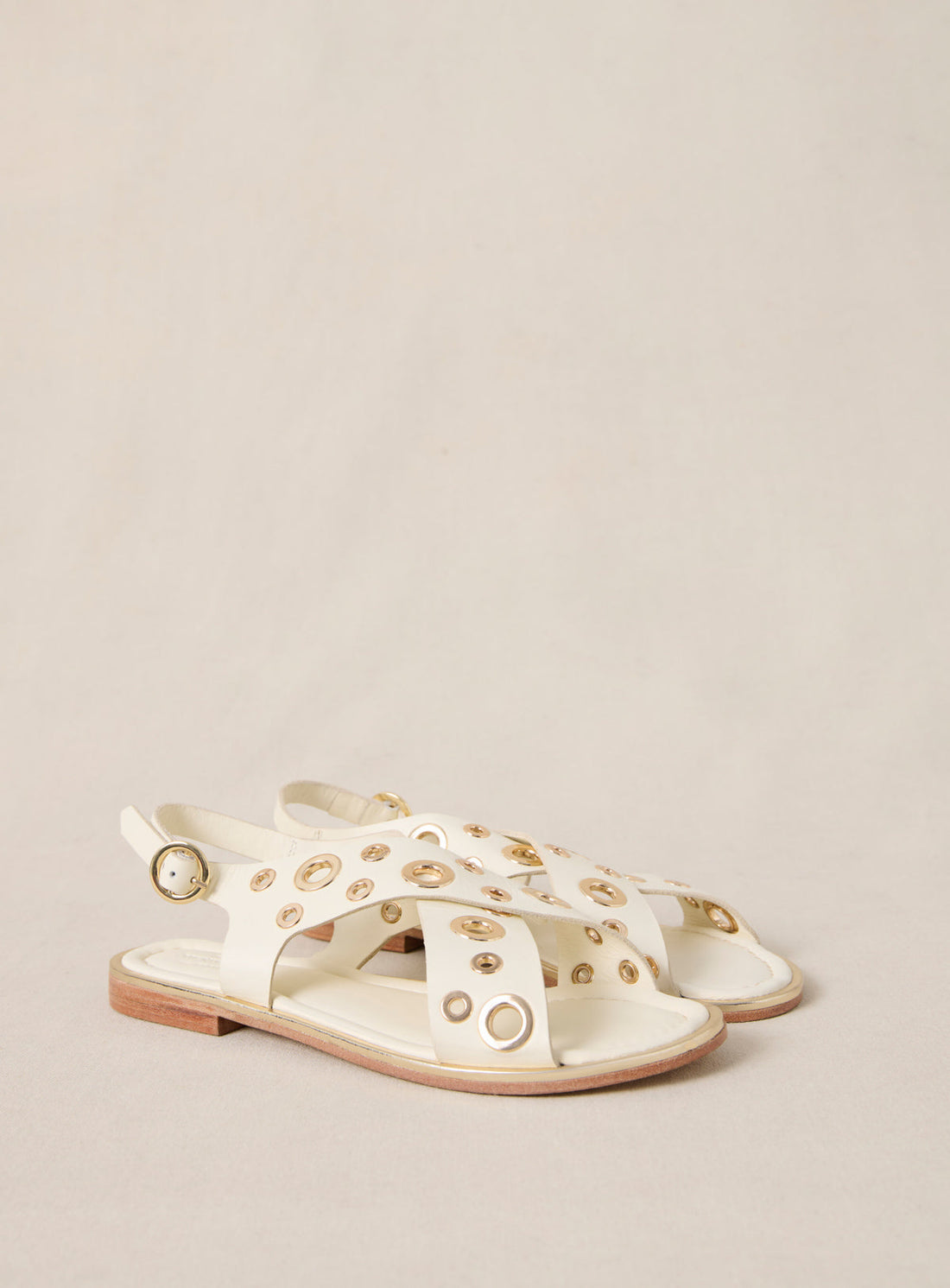 - Sandales plates - Détails œillets dorés - Lanières entrelacées - Fermeture par bride ajustable à...