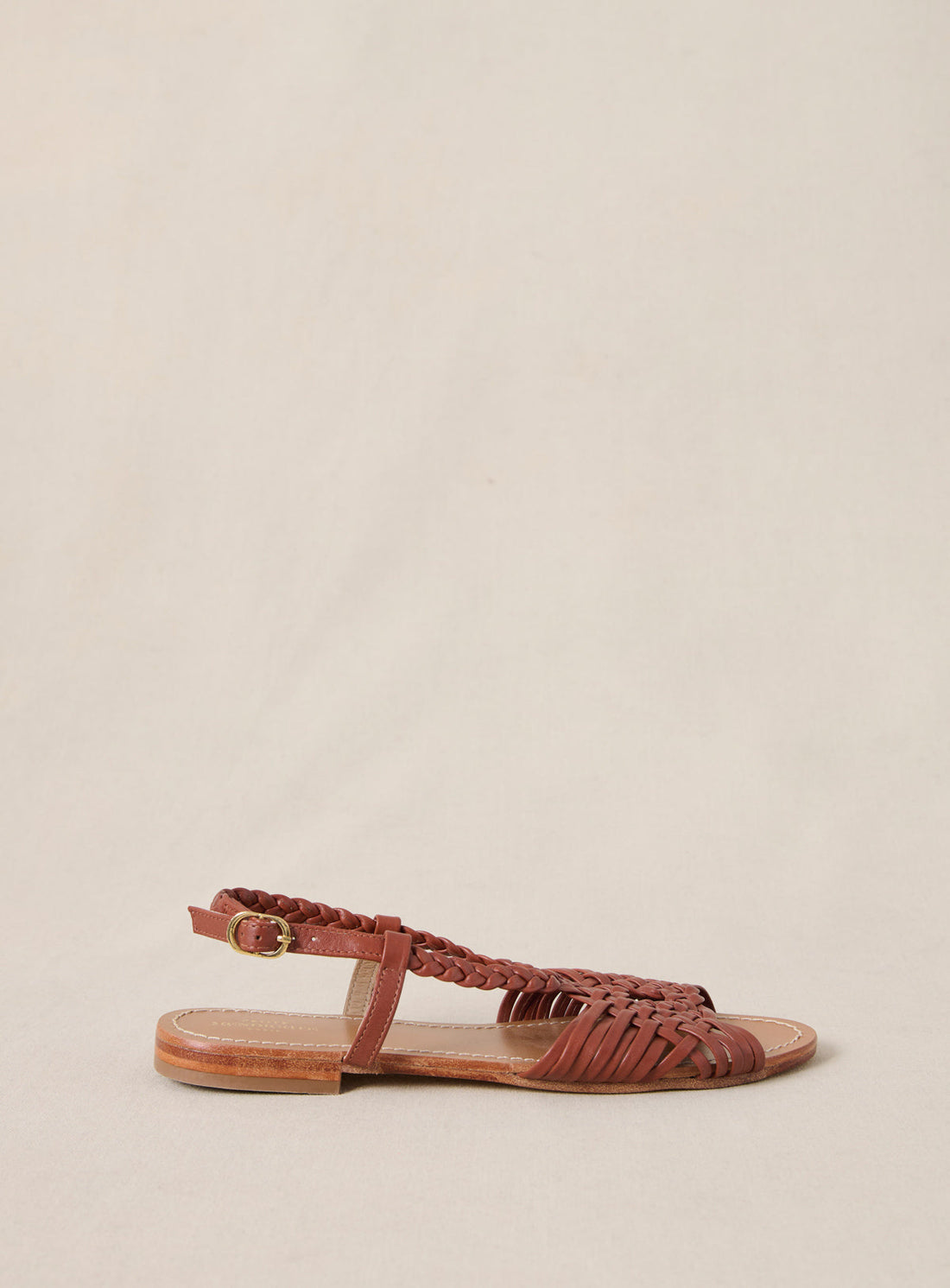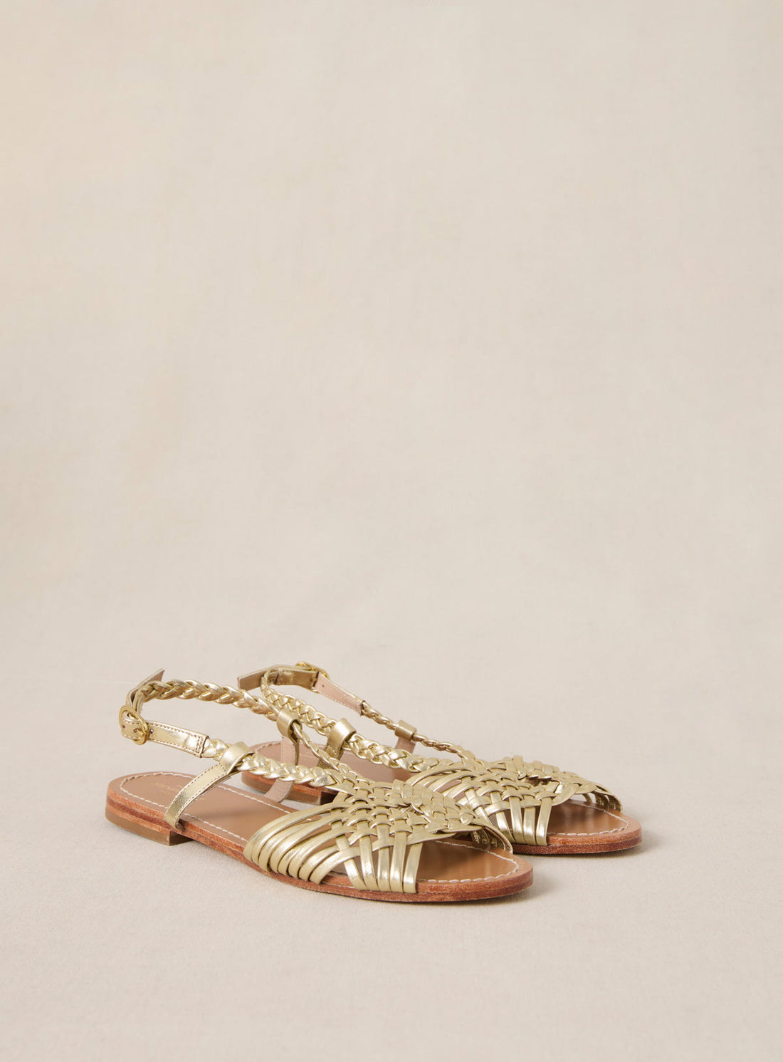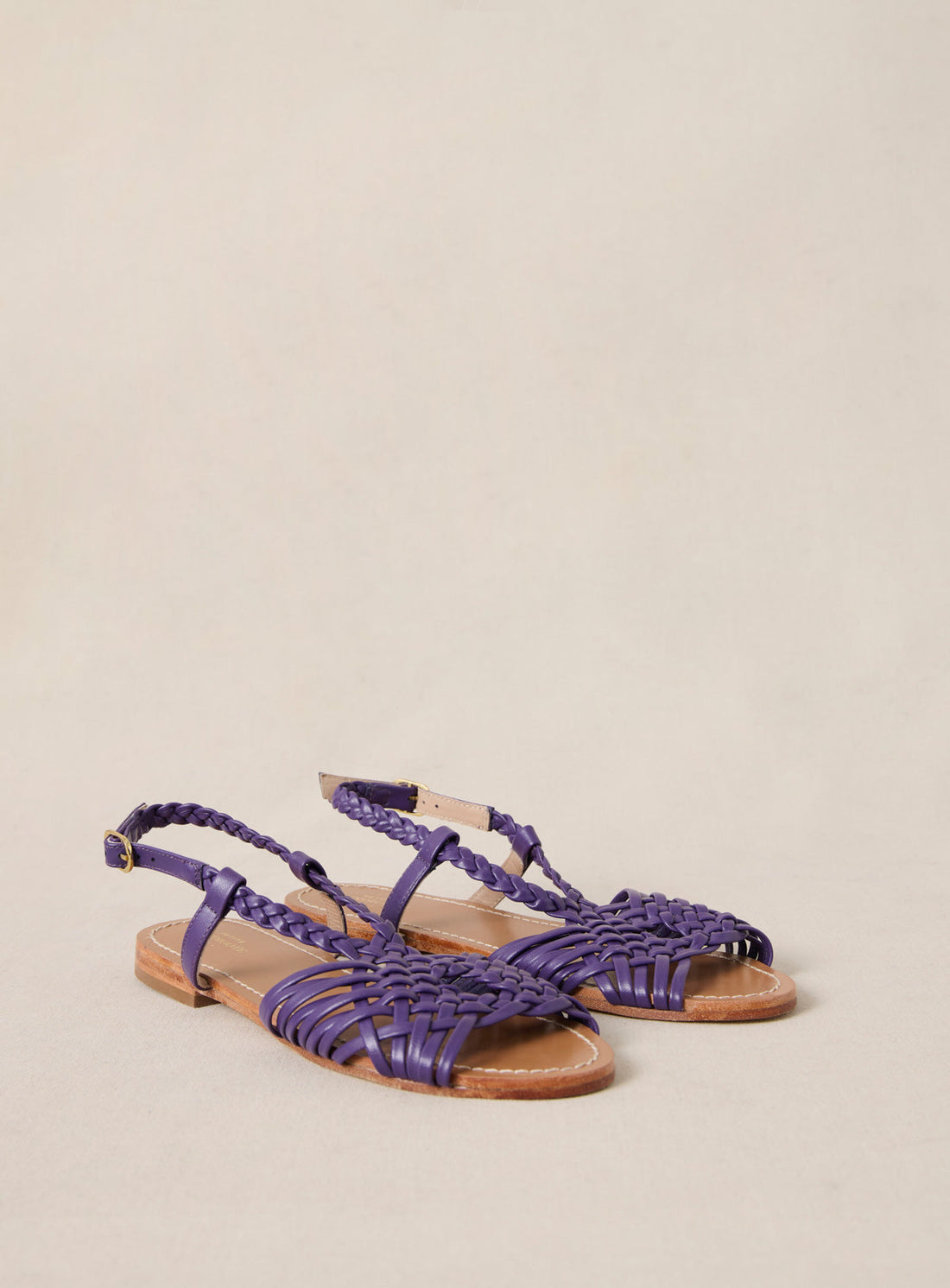 - Sandales plates - Lanières entrelacées en cuir - Bride cheville tressée ajustable - Semelle plate...