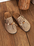 Ce sabot à frange est à la fois confortable et original.