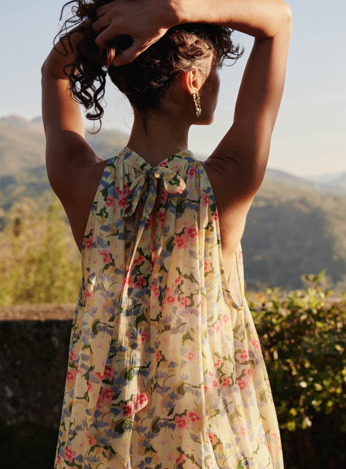 Pourquoi nous l'aimons : Une robe qui danse avec le vent, parfaite pour les journées ensoleillées et les soirées d’été. À porter avec des sandales à talons pour une allure bohème et raffinée. Idéales pour les occasions spéciales.