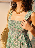 Pourquoi nous l'aimons : Avec son bustier smocké et sa coupe fluide, cette robe est l’alliée idéale des journées ensoleillées. Son tissu léger et son volume vaporeux lui confèrent une allure bohème et raffinée, parfaite pour une échappée au soleil. À porter avec un panier tressé et des lunettes de soleil pour une silhouette estivale sans effort.