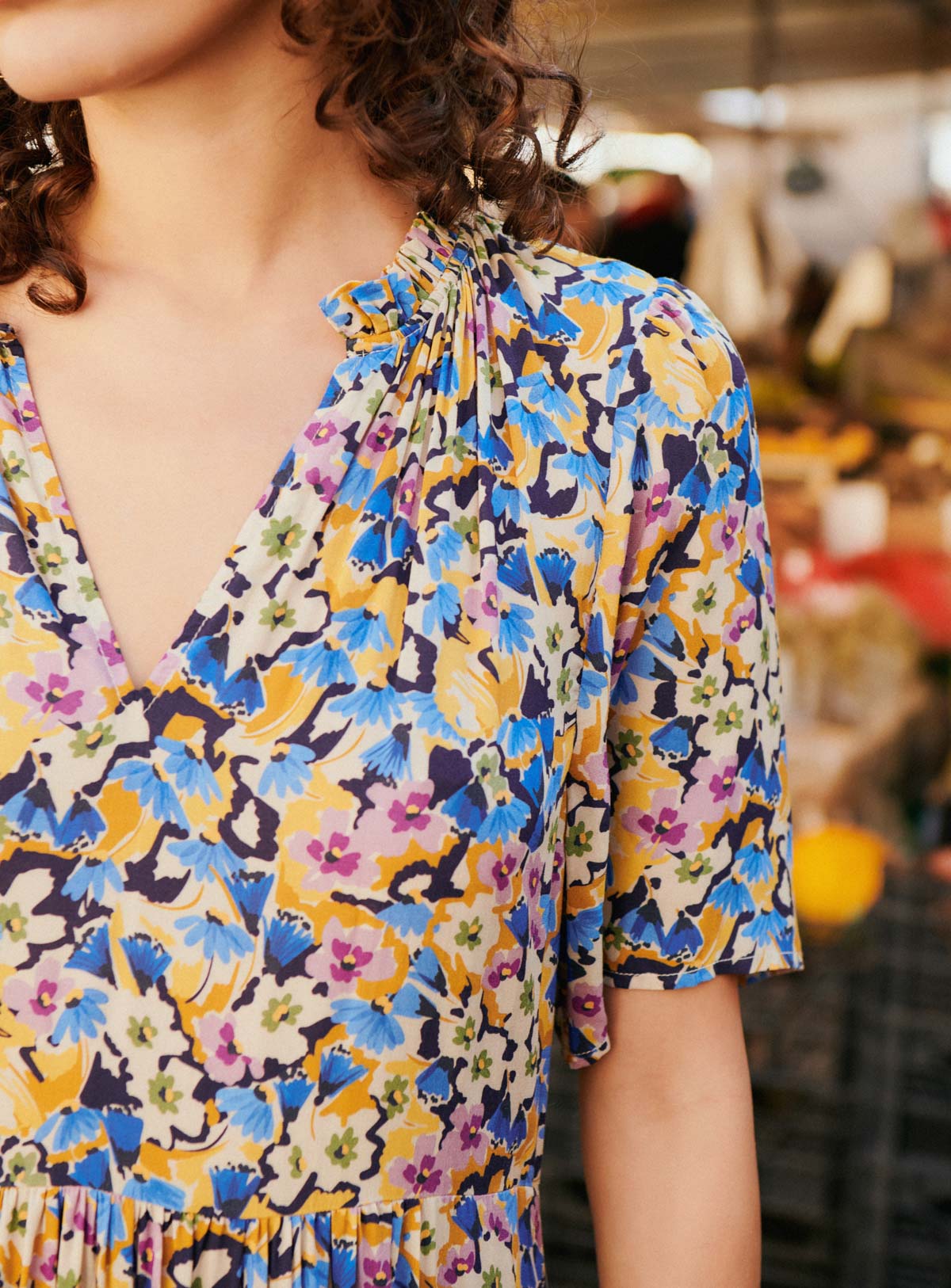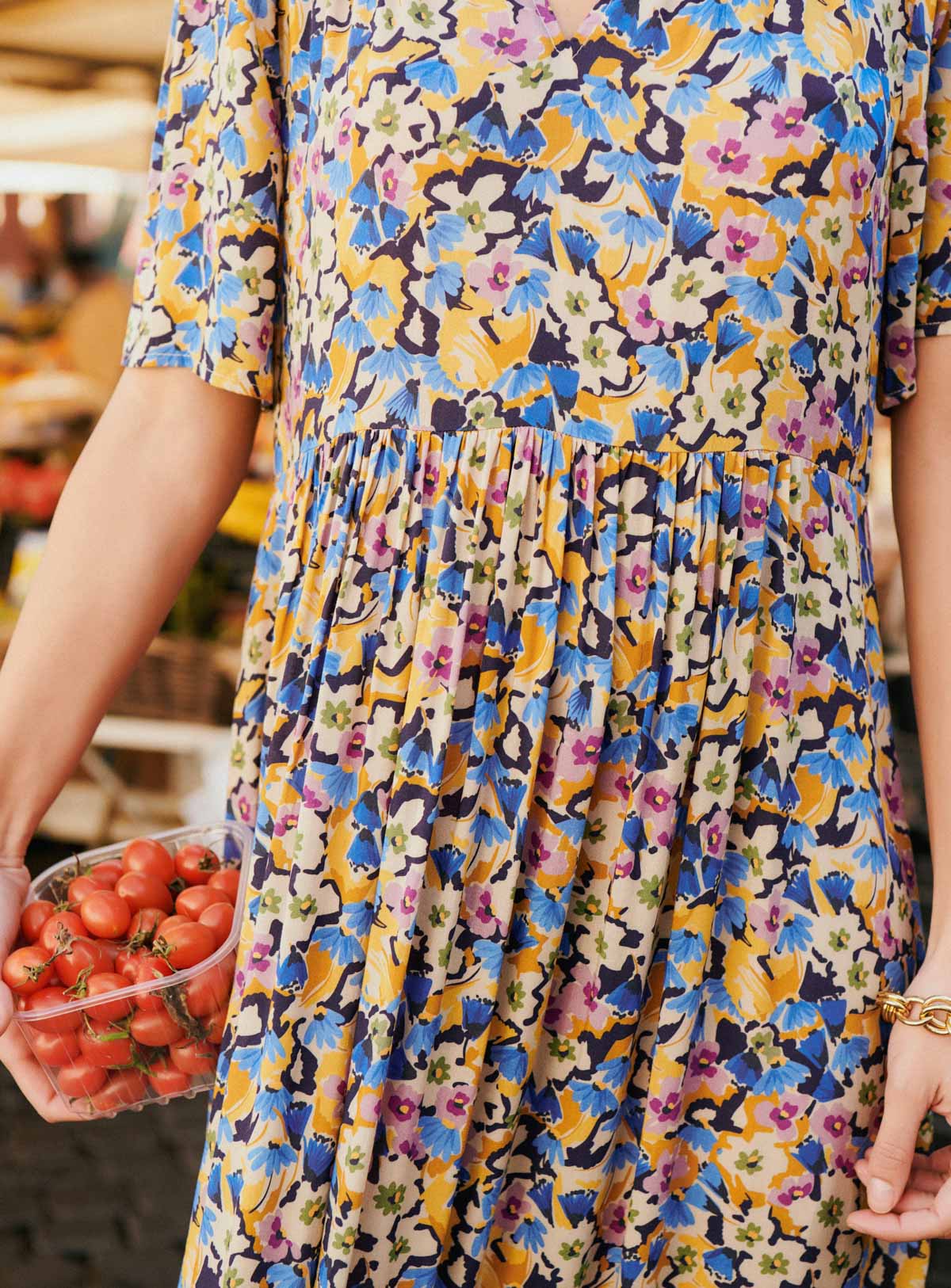 Pourquoi nous l'aimons : Son imprimé vibrant et sa coupe fluide en font la robe parfaite pour les journées ensoleillées, à porter aussi bien en ville qu’en vacances. On modernise l’imprimé fleurs en jouant la fleurs fondue en ce début de saison tel un bouquet. Les fleurs et les couleurs se fondent les unes aux autres.