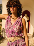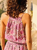 Pourquoi nous l'aimons : Légère et fluide, cette robe sans manches incarne à merveille l’élégance estivale. Son imprimé raffiné et sa coupe aérienne en font une pièce idéale pour les journées ensoleillées, que ce soit en ville ou en bord de mer. Portez-la avec des sandales pour une allure décontractée ou misez sur des bijoux dorés pour une touche plus sophistiquée.