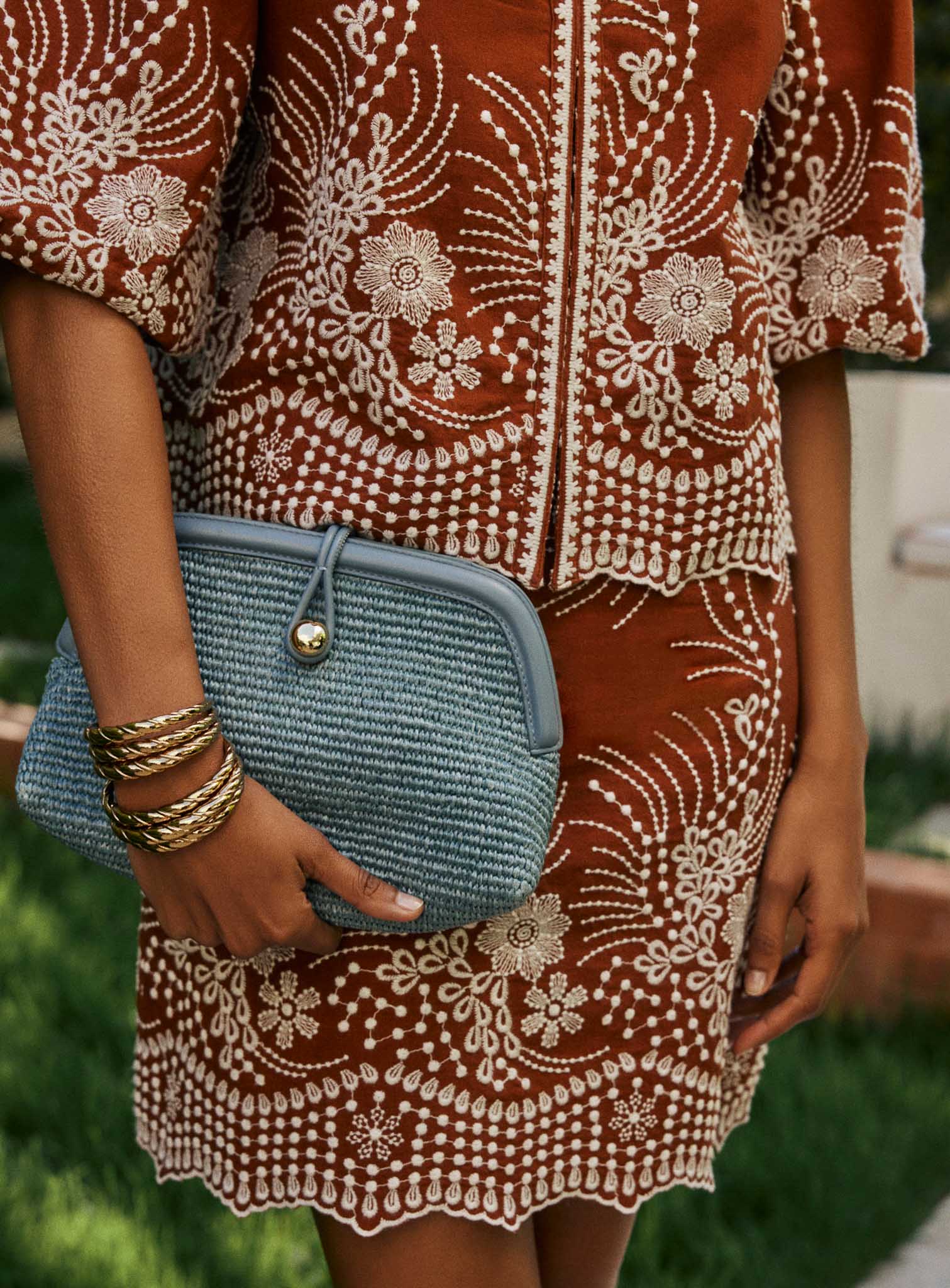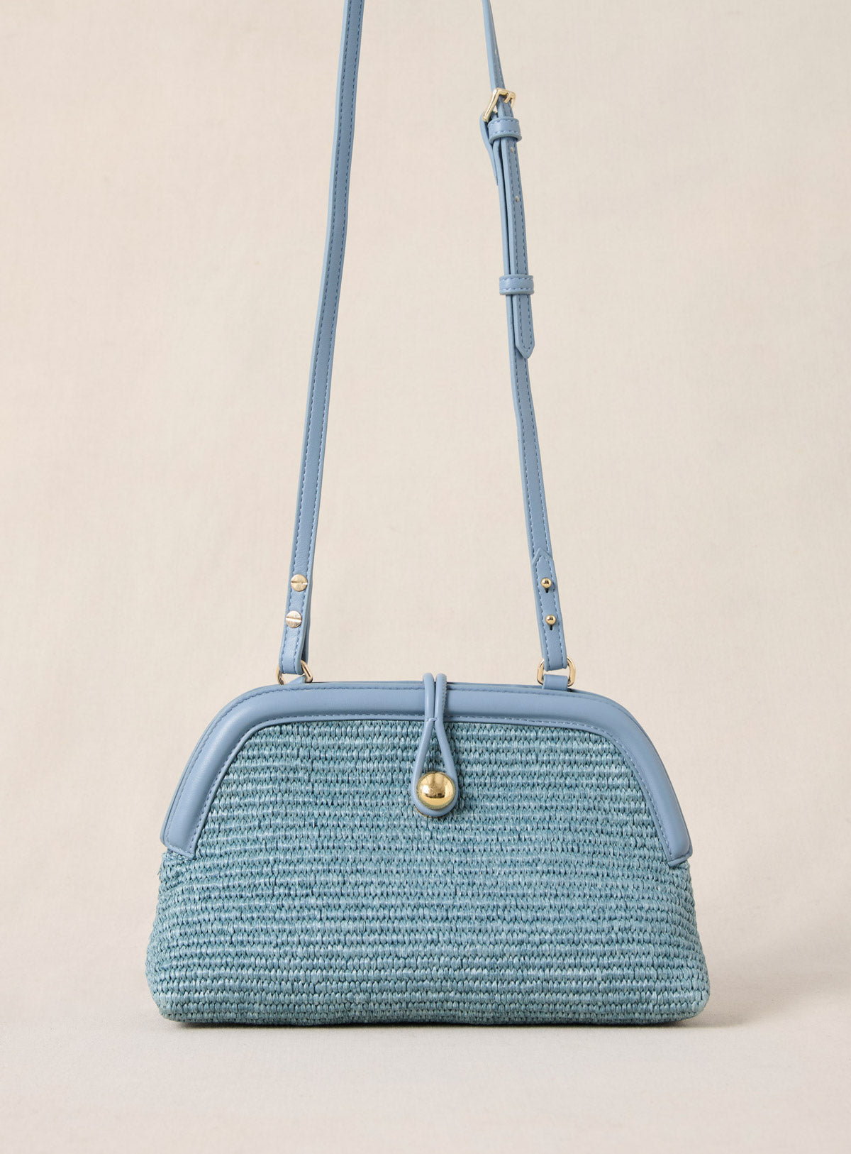 Pourquoi nous l’aimons : Son mélange de cuir et de raphia pastel lui donne une allure élégante et estivale. À la main pour un look raffiné, en bandoulière pour se libérer les mains. Parfait pour une journée en ville ou une sortie entre amies !