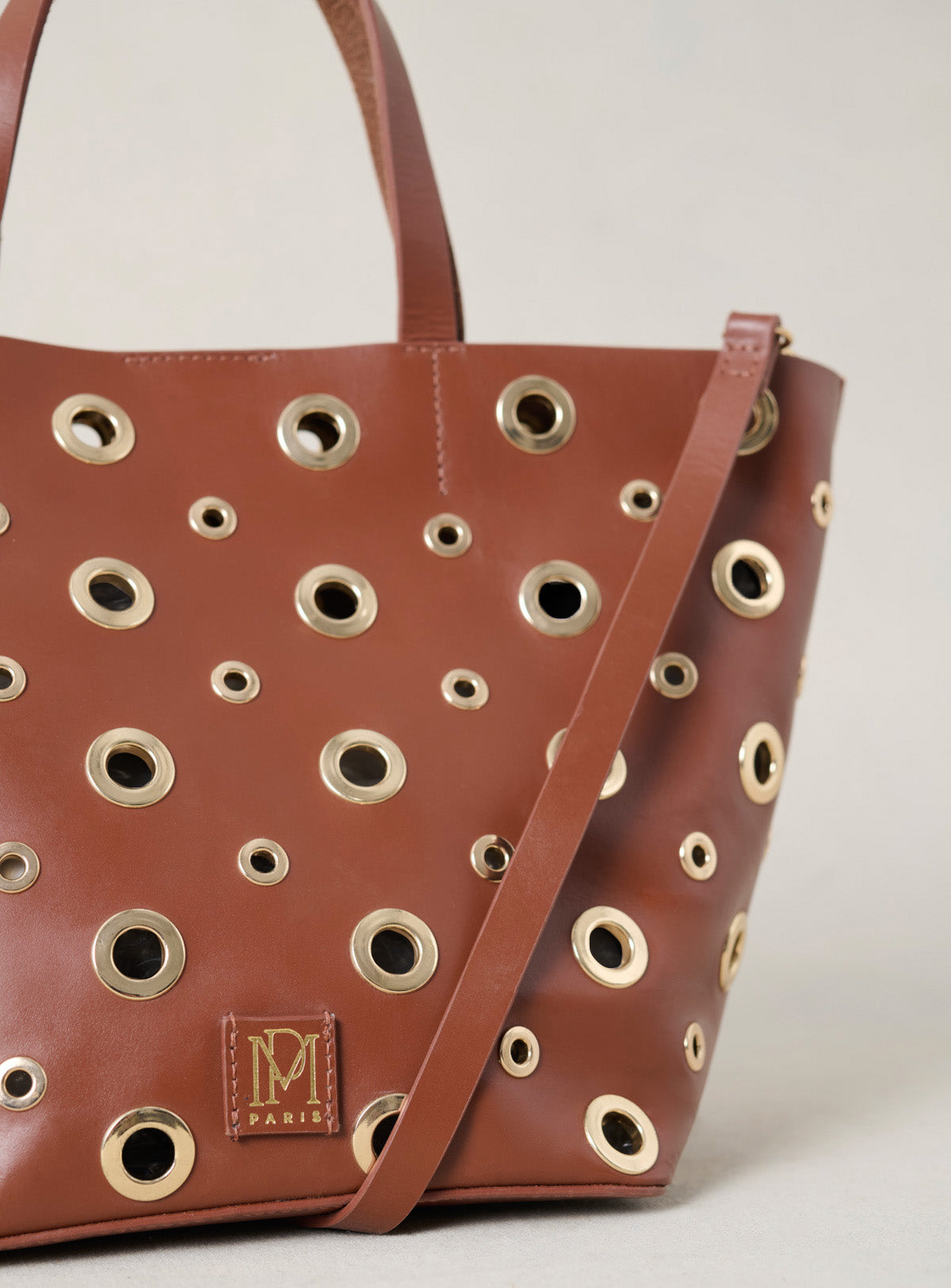 Pourquoi nous l'aimons : Un petit cabas aux lignes pures et fines à oeillets ultra tendance. Son format lui permet d'être fonctionnel tout en étant trendy.