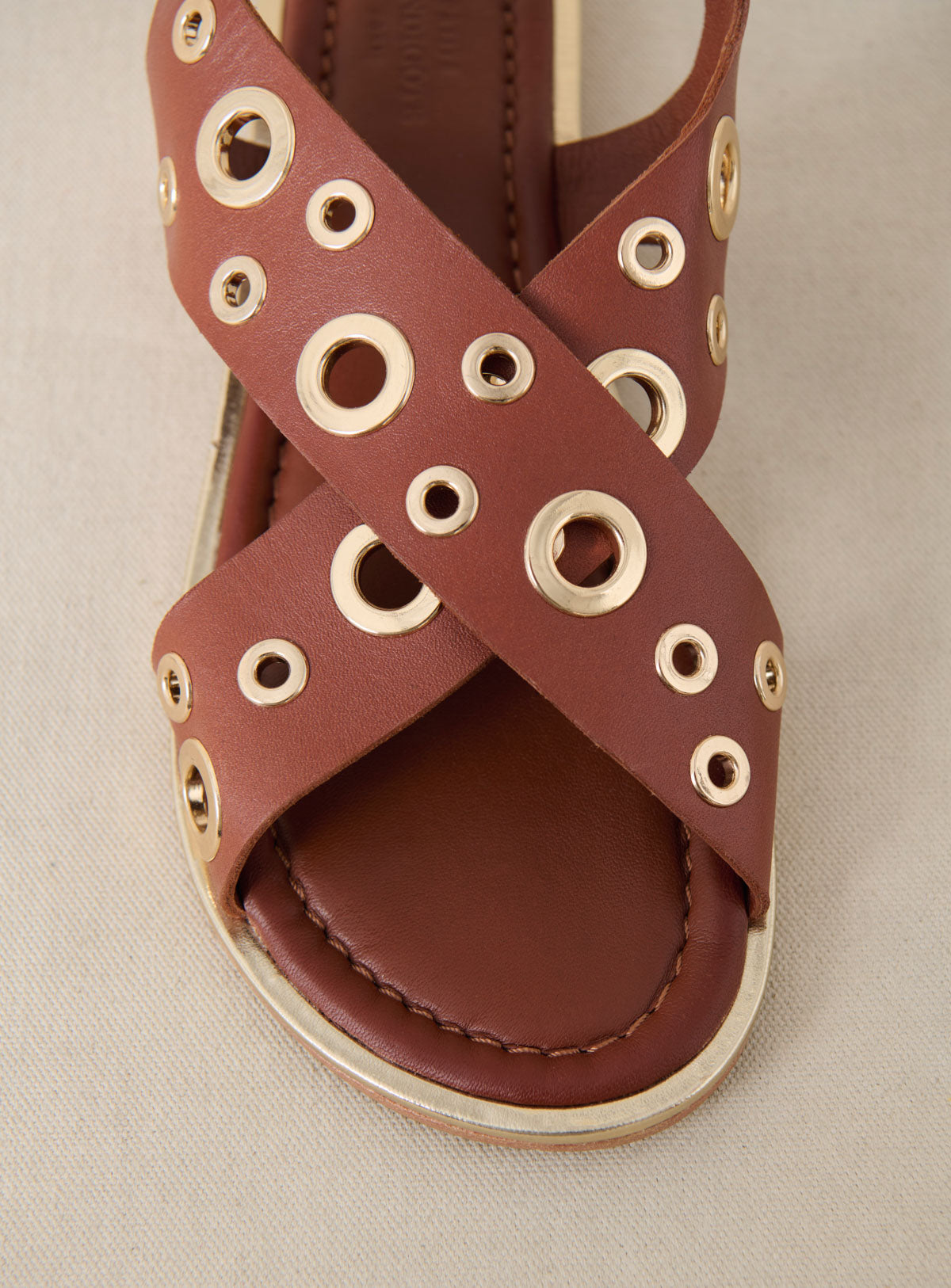 Pourquoi nous l'aimons : Avec son cuir souple et ses œillets dorés, cette sandale apporte une touche rock et sophistiquée à vos tenues estivales. Parfaites avec un jean ou une robe fluide, elles deviendront vite un incontournable de votre dressing.