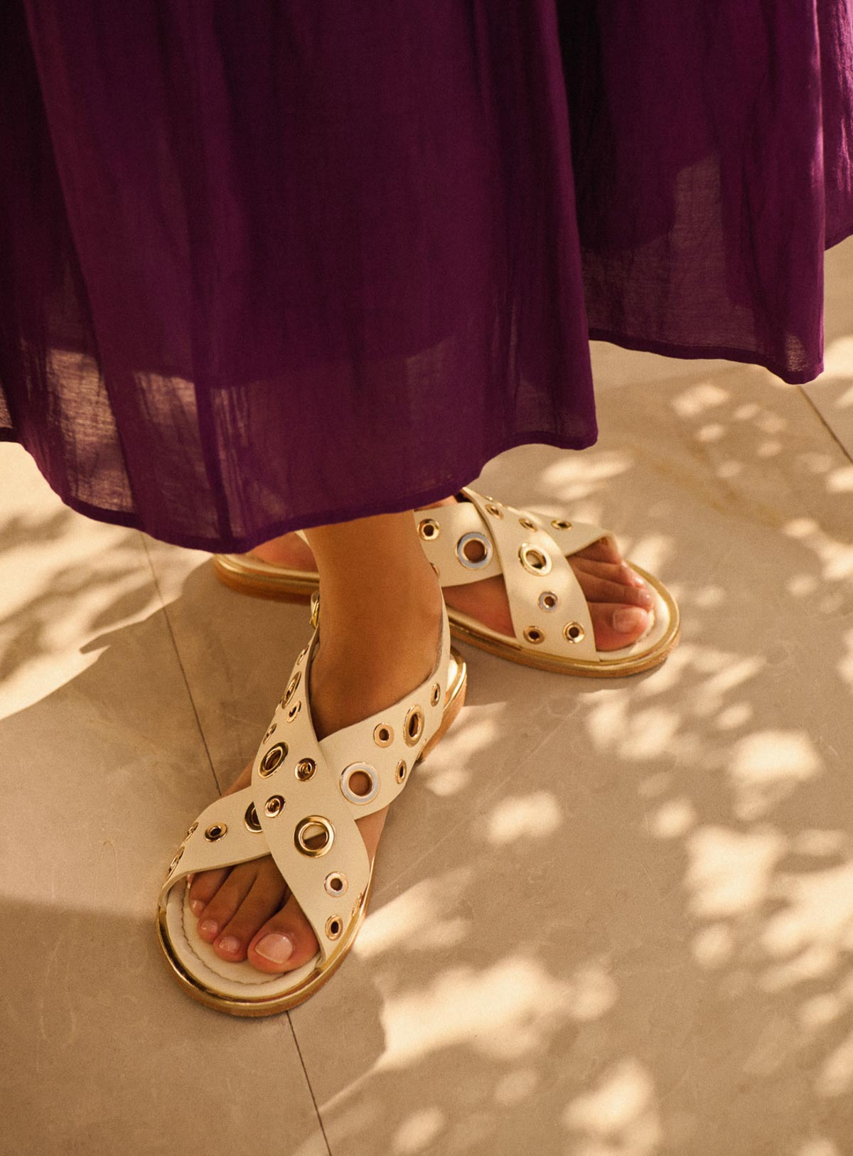 Pourquoi nous l'aimons : Avec son cuir souple et ses œillets dorés, cette sandale apporte une touche rock et sophistiquée à vos tenues estivales. Parfaites avec un jean ou une robe fluide, elles deviendront vite un incontournable de votre dressing.