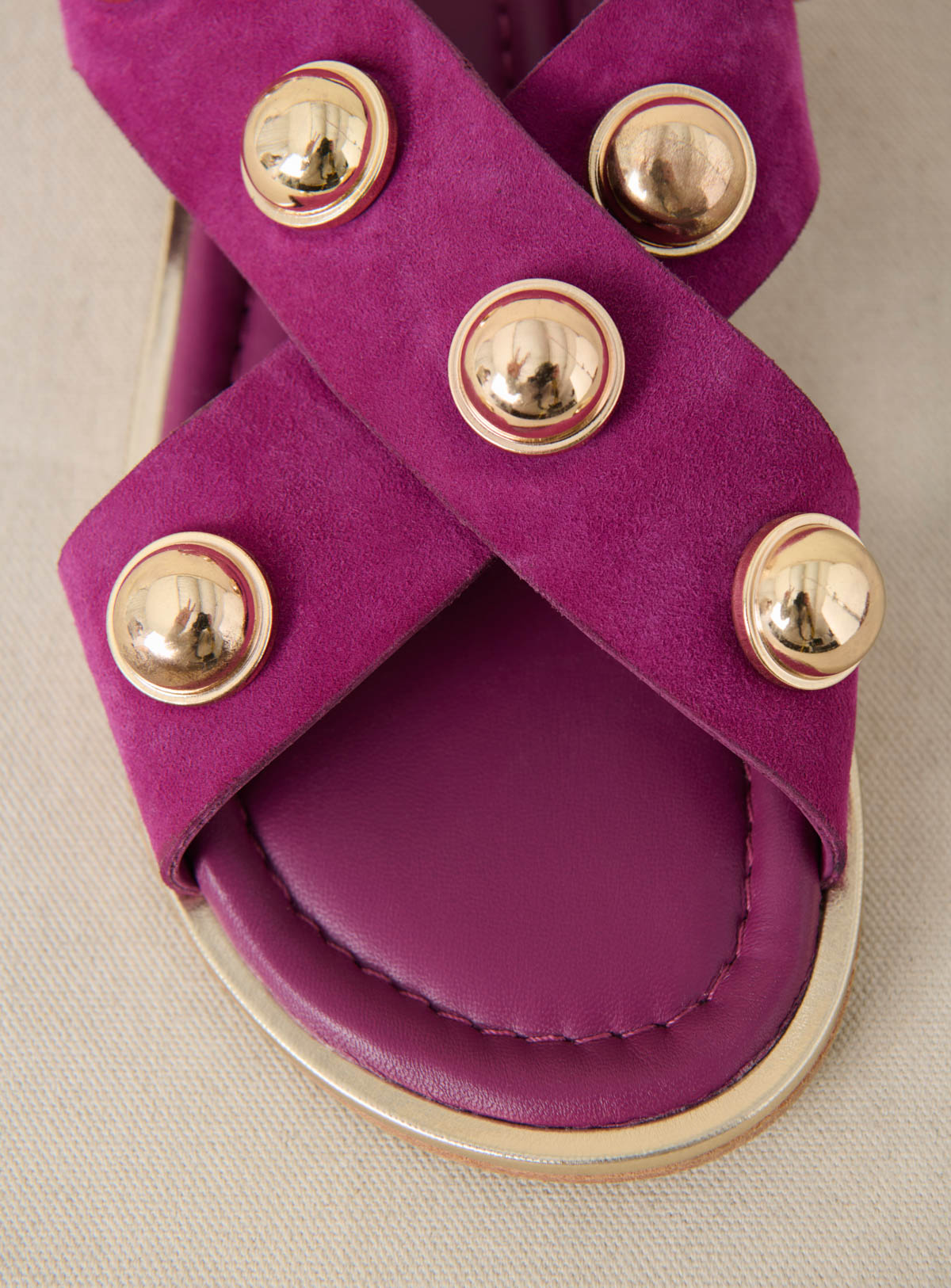 Pourquoi nous l'aimons : Son cuir suédé souple et ses rivets dorés signent une allure rock et affûtée. Portées avec un jean brut ou une robe fluide, elles apportent la juste dose d'attitude à vos looks d'été.